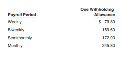 The wage amount shown in the table above (Percentage Method Table for Income Tax Withholding) are net wage after the deduction for total withholding allowances. The withholding allowance amounts by payroll period have changed. For 2018, they are: